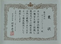 食品衛生優良施設として宮城県知事表彰を受賞しました